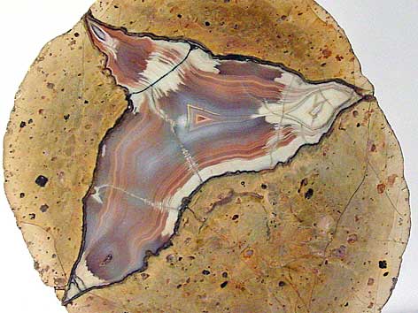 Nr. M524 Quarz (Achat) Achat, Lithophyse, Anschliff Nesselhof bei Schnellbach, Thüringen, BRD Größe Stufe: ca. 7 x 6 cm, 15 € |