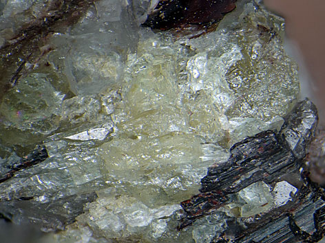 trigonales Kristallsystem; gelblich, leuchtend gelb; als kleine, körnige, kristalline Einschlüsse mit treppenförmigen Bruch. |