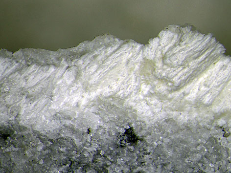 weißlicher, faseriger Korshunovskit Detail der links abgebildeten Stufe Bildbreite: 7,5 mm