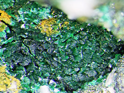 Cu2(CO3)(OH)2 (5.BA.10; Rosasit-Malachit-Gruppe). |