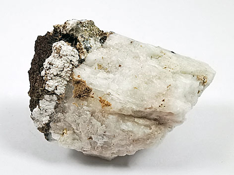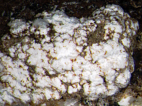 orthorhombisches oder monoklines Kristallsystem (zwei Polytypen: Penkvilksit-2O (orthorhombisch) und Penkvilksit-1M (monoklin)); weiß; "blumenkohlähnliche", porzellanartige Massen aus kleinen faserigen Kristallen oder kleine tafelige Kristalle. |