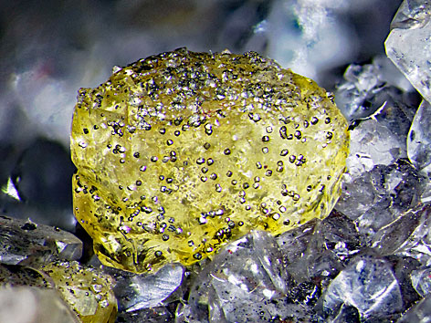 gelber Barytkristall (Meißelspat) auf Dolomit Bergwerk Reust, Ronneburger Uranbergbaurevier, Thüringen, BRD Bildbreite: 1,5 cm