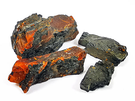 "Blakeburn Amber" in/aus Kohle tertiären (eozänen) Alters Tulameen Kohlerevier, Coalmont, Okanagan-Similkameen, British Columbia, Kanada obere Stück: 3,9 x 2,4 cm
