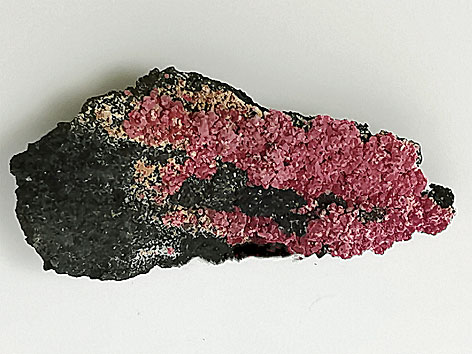monoklines Kristallsystem; blass rosarot bis fleischrot; nur winzige Kristalle; meist findet er sich in Form von Stalaktiten oder krustiger Überzüge. |