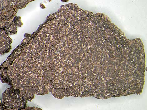 orthorhombisches Kristallsystem; weiß, feinkörnig, gelegentlich als kaum sichtbare Flocken, Partikel als Bestandteil von Ton |