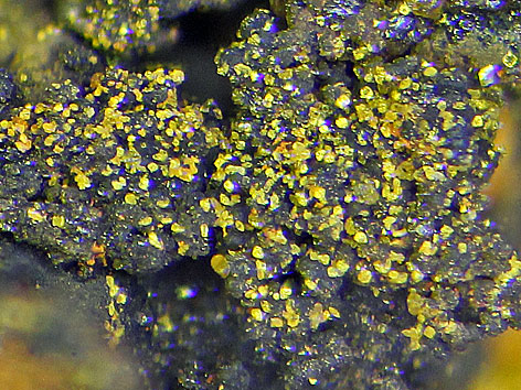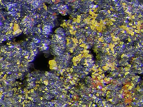 gelbe Cyrilovit xx auf Rockbridgeit Grube Cornelia, Hagendorf-Süd, Waidhaus, Oberpfalz, Bayern, BRD Bildbreite: 2 mm