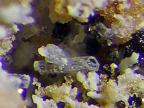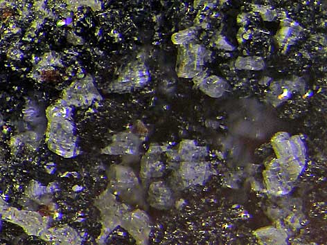 ![]() Davyn xx neben Augit, Andradit u. a. Bellerberg, Ettringen, Mayen, Eifel, Rheinland-Pfalz, BRD Bildbreite: 1,4 mm