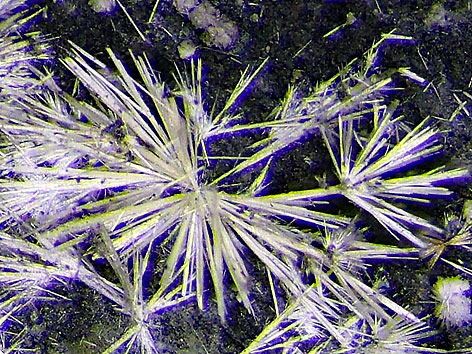triklines Kristallsystem; cremeweiß, hellgelb bis bräunlichgelb; nadelförmige Kristalle in meist strahligen Aggregaten; nicht zu verwechseln mit Ferrostrunzit. |