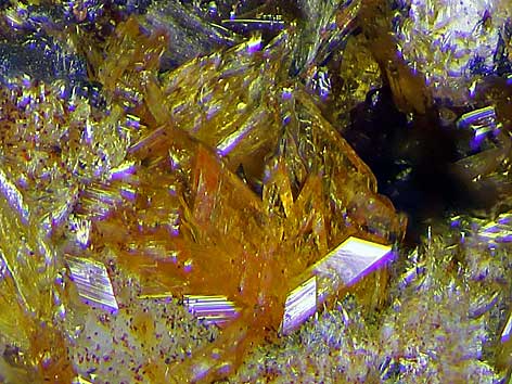 triklines Kristallsystem; Polymorph von Pseudolaueit und Stewartit; gelborange, hell- bis honigbraun; durchsichtige bis durchscheinende Kristalle bis drei Millimeter Größe mit tafeligem bis prismatischem Habitus und glasglänzenden Oberflächen |