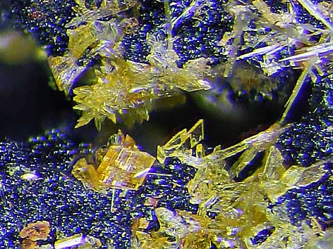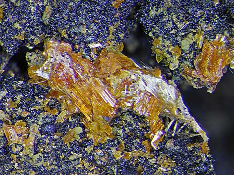 ![]() Laueit xx neben Stewartit und Strunzit auf Rockbridgeit Grube Cornelia, Hagendorf-Süd, Waidhaus, Oberpfalz, Bayern, BRD (TL) Bildbreite: 2 mm