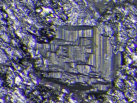 monoklines Kristallsystem; metallisch grau bis schwarz, oft schillernde Anlauffarben; Kristalle prismatisch, kugelig bis stengelig, meist mit deutlicher Riefung entlang der c- Achse |
