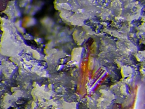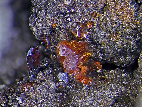 Xanthokon xx neben Quarz, Galenit und anderen Silbersulfiden Imiter Mine, Bergbau Imiter, Boumalne-Dades, Quarzazate, Draa-Tafilatet, Marokko Bildbreite: 1,5 mm