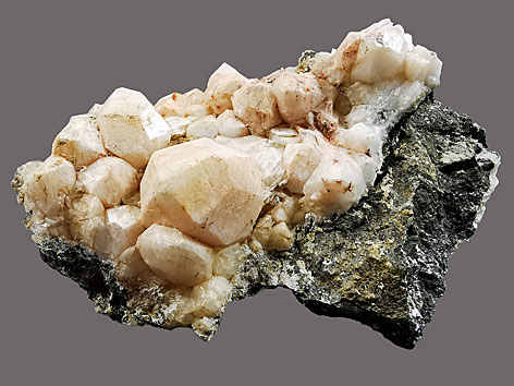 farblose Analcim xx neben Heulandit auf Tonschiefer St. Andreasberg, Harz, Niedersachsen, BRD Stufe: 10 x 7 cm |