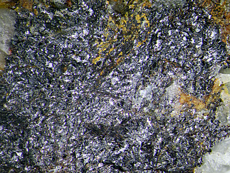 Sphalerit mit Argutit als schwärzliche Körner bis 20 μm Größe Detail der links abgebildeten Stufe Bildbreite: 10 mm