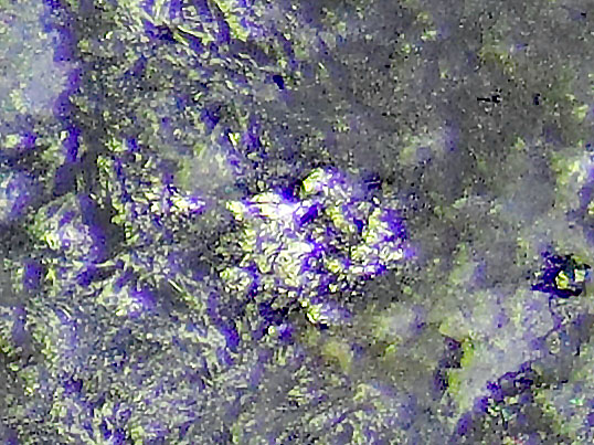 kubisches Kristallsystem; metallisch weiß mit rosa farbton, silbergrau, bleigrau, gelegentlich bornitähnliche Anlauffarben; Metallglanz; als körnige Aggregate bis 3,5 cm Größe und krustige Überzüge.