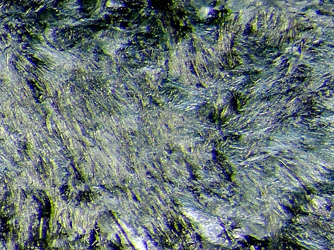 ![]() faserige Chestermanit xx Detail der oben links abgebildeten Stufe Bildbreite: 6 mm |