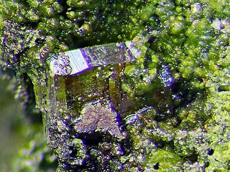 Raspit-Kristall auf/neben Cuprotungstit Grube Cordillera, Tuena, Georgiana Co., New South Wales, Australien Bildbreite: 2,5 mm