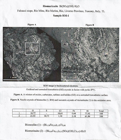 Bi(OH)(SO4)·H2O (7.DF.75; Riomarinait-Gruppe). |