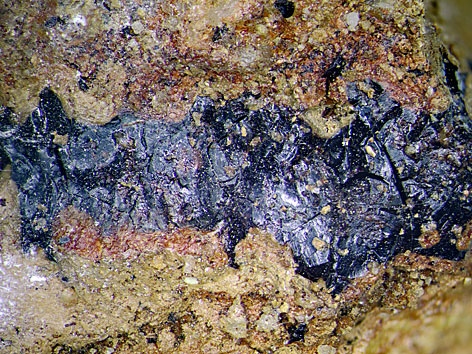 Yukonit pechähnlich in Matrix Venus Mine, Windy Arm, Tagish Lake, Carcross, Whitehorse Bergbaugebiet, Yukon, Kanada Stufe: 3,3 x 2,4 mm